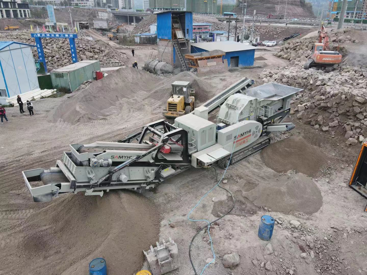 萬州北站建筑骨料移動破碎篩分作業(yè)現(xiàn)場